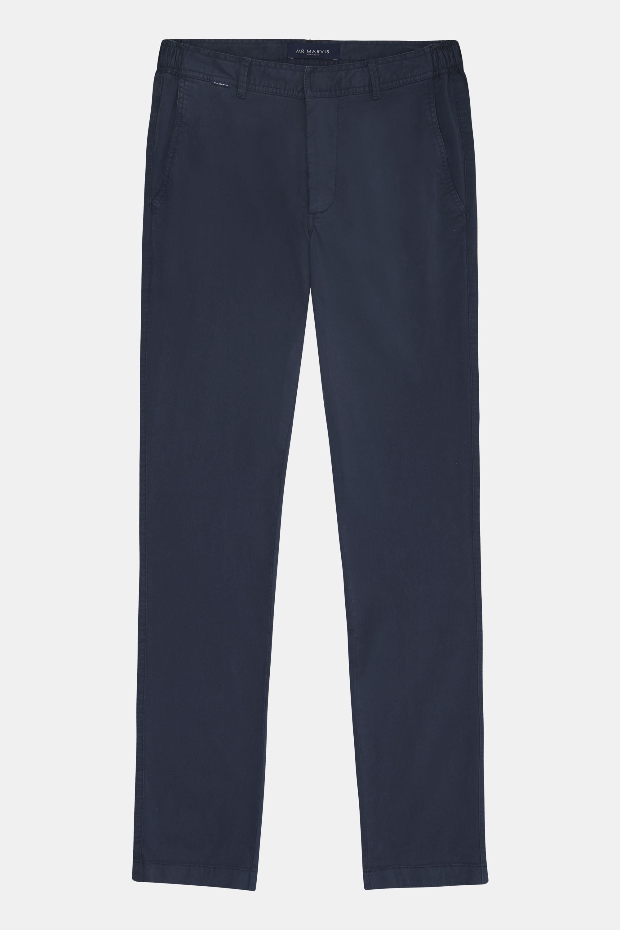 Mød The Cosmics long: MR MARVIS' mørkeblå bukser i bomuld med stretch til mænd. Med The Longs er du altid klar, uanset årstiden.